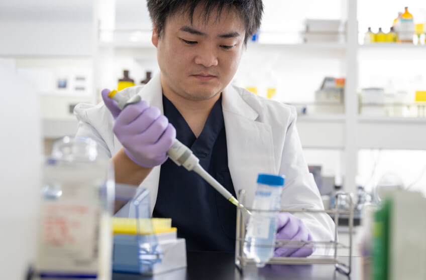 旭川医科大学眼科学講座の創生期は、海外留学や基礎研究室への留学を経て学位を取得した医局員が多かったのですが、その後教室で基礎研究が行える体制と人材を育成し、多くの医局員が眼科医局に所属しながら基礎研究で学位を取得し、大学院をほぼ全員4年で卒業しています。私自身も大学院の3年間生理学教室に身を置いて、いわゆる基礎研究の洗礼を浴び、そこで研究の面白さに目覚め、臨床と研究を両立しながら今に至っております。内科的要素(外来診療、薬物治療)と外科的要素(手術)の両立ができることが眼科の魅力の一つですが、旭川医大眼科では臨床と研究の両立も十分可能です。