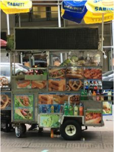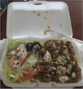 至る所にVenderと呼ばれる屋台がありますが、どこも清潔で食中毒の発生は聞いたことがありません。物価の高いNYにおいてこの価格で、お腹いっぱいになれるのはありがたいことです。その辺のレストランよりもずっと美味しいです。昼間は近くのサラリーマンなどで長い行列ができることもしばしばです。見た目は悪いですが、味は超B級です!!
