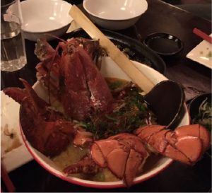 アメリカ人=ワイルド+ロブスターLOVE+日本食LOVE、この普遍的な方程式を体現した食べ物がこちらです。味噌ラーメンに大きなロブスター一匹まるごと入っています。留学生には手の届かない値段ではありますが、オーナーが知り合いだったため、なんと50%オフ且つチップなし、にしてもらっていました。見た目も味もワイルドです、人間の価値観とは相対的なんだと、改めて思い知らされました。意外と味は繊細です。蔵や玄の塩ラーメンより濃厚で、かつパンチが効いている感じです。