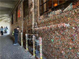 翌日からは学会に参加しさまざまな最先端の研究を学びましたがそれについては後述させていただきます。学会の合間や終わった後は気分を入れ替え、観光や交流会に参加させて頂き、また別の刺激を頂きました。連日行われた様々な交流会では他の大学の先生方の普段の仕事のことや研究内容であったりを聞かせていただいたほか、アメリカのオクラホマ大学の交流会に参加した際には誰もが知っている教科書を書かれている先生ともお話しをさせていただけるなどと、なかなかできない貴重な経験をさせて頂きました。 観光では「シアトルといえば」というような有名スポットをまわりました。スペースニードルからのシアトルを一望する景色であったり、Pike Place Marketの出店の数々やガムの壁と言われるストリートの一角などなど。私も今野先生も子供のように眼を輝かせ多くの写真を撮りましたのでいくつか載せさせて頂きます。 また初日には改装工事していたスターバックスの1号店も無事修復され、みんなで訪れることができました。今回はしっかり行列ができていました。楽しい話は尽きませんが、そろそろ学術的な内容にも触れたいと思います。いくつか今回のARVOで我々が気になったトピックスを共有させて頂きます。 糖尿病網膜症に関連する血管新生や炎症性シグナル伝達経路の両方の転写因子を調節するRef-1を阻害する経口接種できる新薬に関する発表がありました。すでに第2相臨床試験のデータが出ており、第3相臨床試験に向けて事後解析として、実際に糖尿病網膜症の進行を抑制しうるのか、という内容でした。内服した群で有意に糖尿病網膜症の進行を抑制しうる結果が得られていました。眼科医としては現状、糖尿病網膜症が悪化してからの治療がメインになっていますが、進行の抑制に介入できる新薬ができれば網膜症診療がまた一歩変わるのではないかと感じました。 興味深いと思われたのがアルツハイマーモデルのマウスを用いた研究です。そこではアルツハイマーの症状が出てくるよりも先に眼に変化が出てくるというものです。具体的にはERGの変化であったり、眼杯の形状が変わっているという点に着幕された研究でした。 テキサスでの田中先生との話し合いでも出てきていたアルツハイマーについての研究であったので、やはり眼科としてもアルツハイマーに関する一助となる研究はあるのだなと感じ、自分の研究の指針ともなる出会いとなりました。 我々は今回の旅での経験を踏まえ自分の研究に活かし、今度は研究結果を持ってのぞめるようにしたいと感じました。