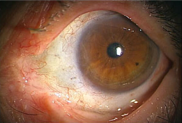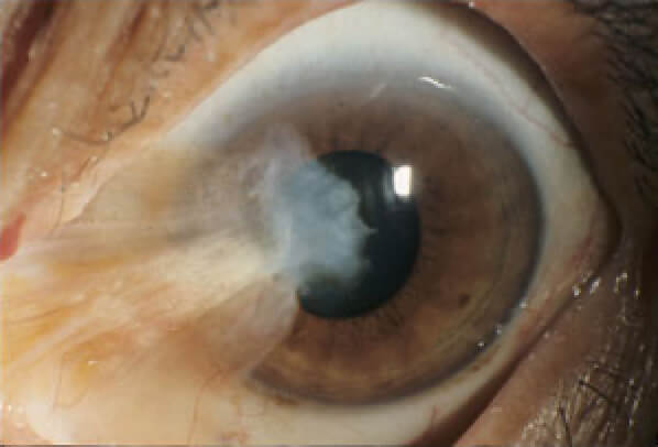 羊膜とは胎児が母体内で養われている際に包まれている薄い膜です。これを眼表面の欠損部やきずあとに移植することが治療として有効であることがわかりました。旭川医大では、角膜上皮欠損の遷延、熱傷、化学傷、腫瘍切除後、再発性の翼状片といった難治な眼表面疾患に対する羊膜移植に取り組んでいます。