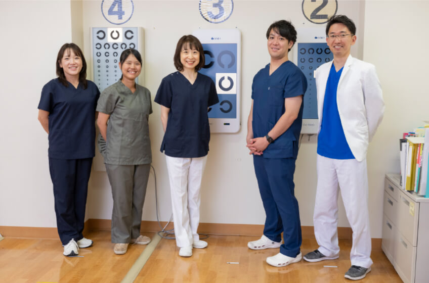 弱視とは、主に強い屈折異常(遠視、近視、乱視)や斜視などが原因で正常な視力の発達が妨げられることによる視力不良で、眼鏡をかけてもよく見えない状態となります。視覚の発達する“感受性期間”は、生後から6歳くらい、長くても8−9歳ぐらいまでと考えられています。弱視治療は、この“感受性期間”に行うことが重要です。眼鏡装用、健眼遮閉(アイパッチ)、点眼薬による治療を行います。 眼鏡:正しい度数の眼鏡をかけるため、ピント合わせ(調節)を麻痺させる目薬を使用し、屈折度数(遠視・乱視・近視)を測定しています。成長に合わせて眼鏡の変更が必要ですが、9歳未満は治療用眼鏡代金の一部が補助される制度がありますので、対象のお子様にご案内しています。 健眼遮閉(アイパッチ):視力の良い方の目(健眼)を隠して弱視の目を積極的に使わせ、視力の発達を促す治療です。最初は見えにくいため大変なトレーニングですが、治療効果は証明されていますので、お子さんを励ましながら継続することが大切です。 点眼治療:健眼に調節(ピント合わせ)を麻痺させるアトロピンを点眼し、近くを見るときに弱視眼を優位に使うことでトレーニングを行う治療法です。 斜視弱視外来では、視能訓練士と連携して必要な検査、治療を行っています。発達期にある小児の患者さんは良好な視力と両眼視機能の獲得、年齡の高い小児や成人の患者さんは症状や悩みの軽減を目標に治療を行っています。丁寧な説明を心がけていますが、ご心配なことや疑問点がありましたら担当医師やスタッフに遠慮なくご相談ください。